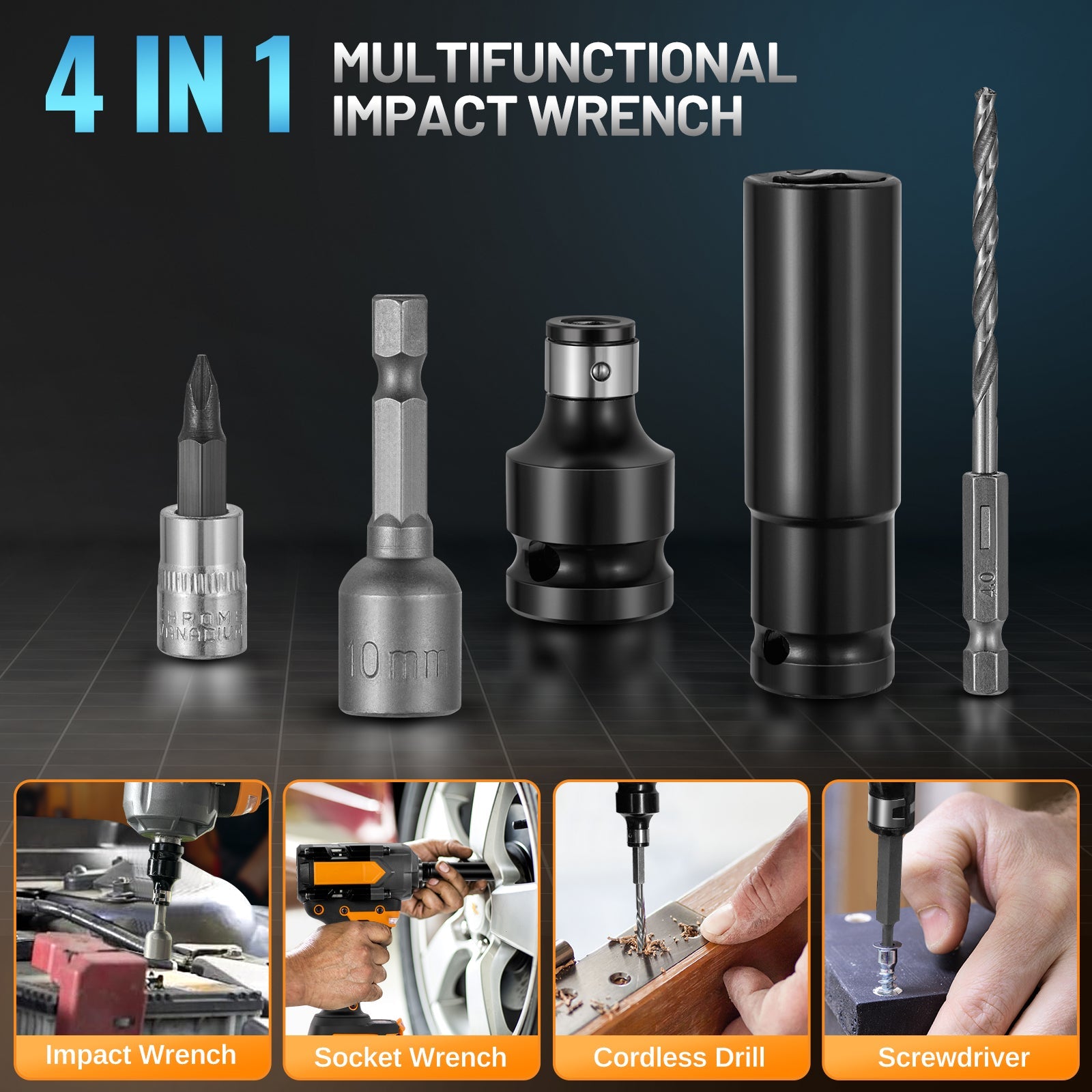 ➤【3-IN-1 TOOL FOR HOME, AUTO & HEAVY-DUTY JOBS】: More than an impact wrench—it also functions as a drill and screwdriver. Loosen or tighten lug nuts, bolts, or screws on cars, RVs, tractors, and construction gear. Great for home improvement, vehicle maintenance, scaffolding assembly, and more. Replace your bulky toolbox with one powerful, compact tool.