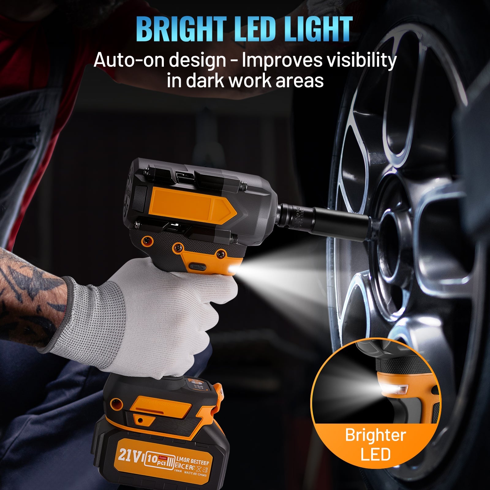 ➤【BUILT-IN LED WORK LIGHT】: Work confidently in dark spaces with a built-in LED light that illuminates your workspace. It stays on 20 seconds after releasing the trigger—perfect for under-vehicle repairs, garage corners, or tight engine bays. No more working blind.
