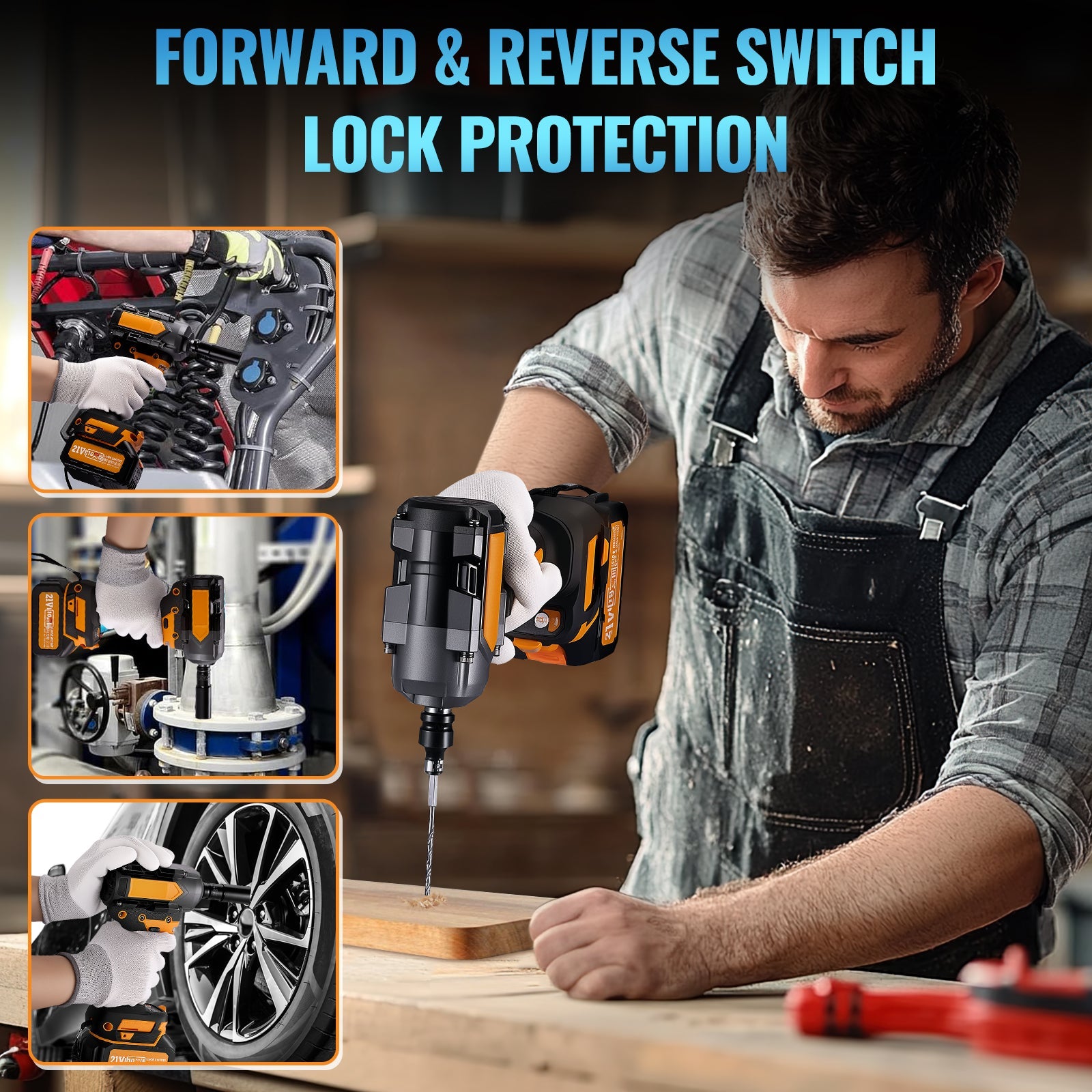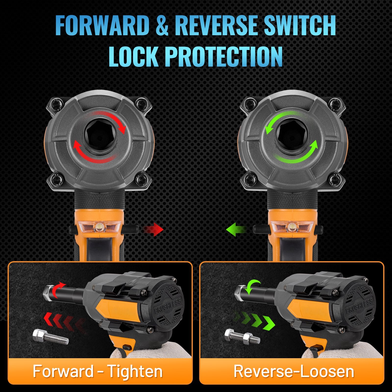 ➤【AUTO-BRAKE & EASY THUMB CONTROL】: Switch between forward, reverse, and lock with simple thumb controls. In reverse mode, the smart auto-brake halts rotation as soon as the nut is removed—no flying bolts, no stripped threads. Safer operation, smarter control, and peace of mind for your tools and workpieces.