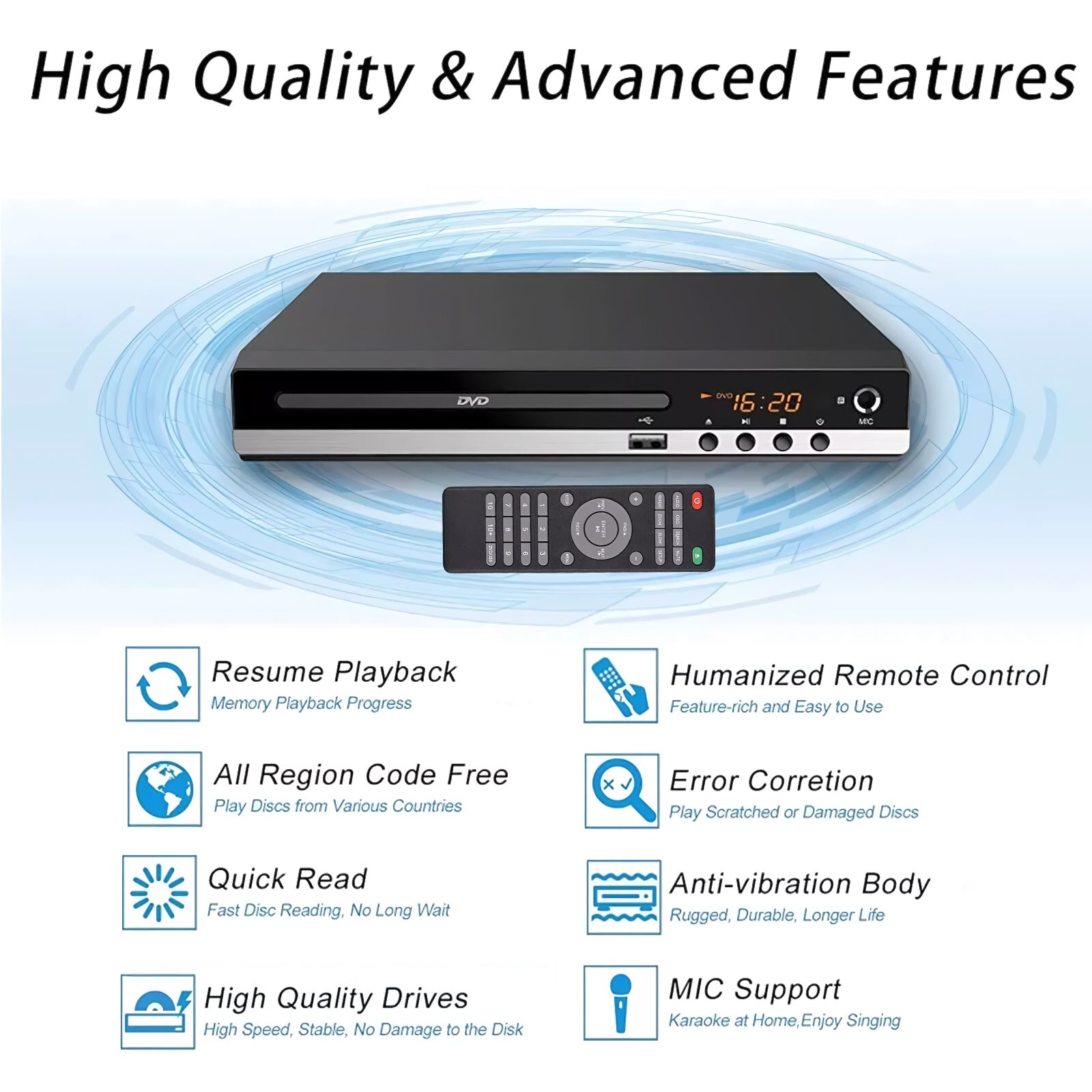 ✔️ 1080p Upscaling – Enhances DVD content to Full HD via HDMI for sharper visuals, ideal for home theaters.