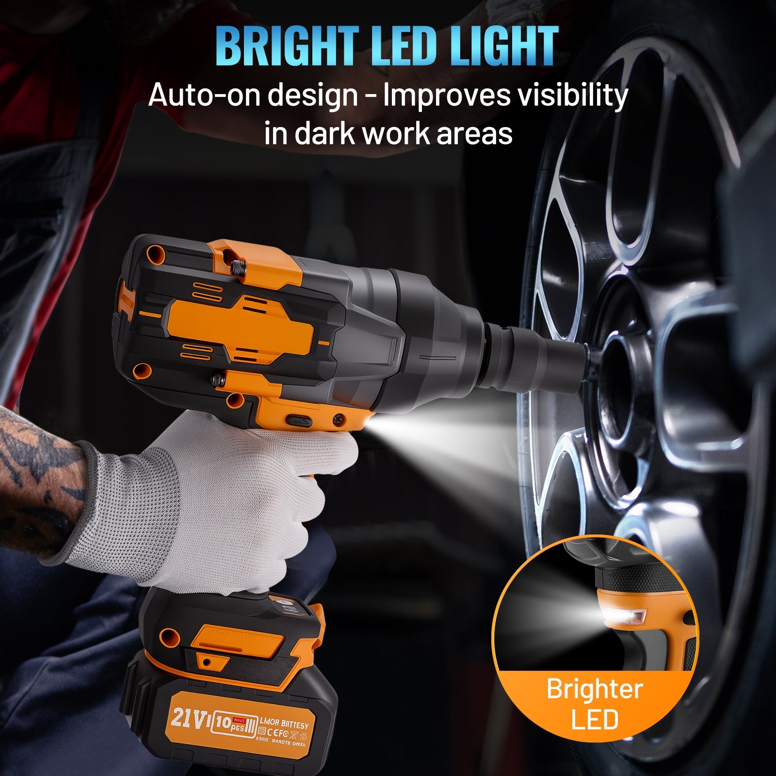 ✦ BUILT-IN LED LIGHT FOR DARK WORK AREAS: A powerful LED work light automatically activates in low-light settings, illuminating tight engine bays, scaffolding joints, or night-time roadside jobs. The light stays on for 20 seconds after trigger release, giving you clear visibility when it matters most.