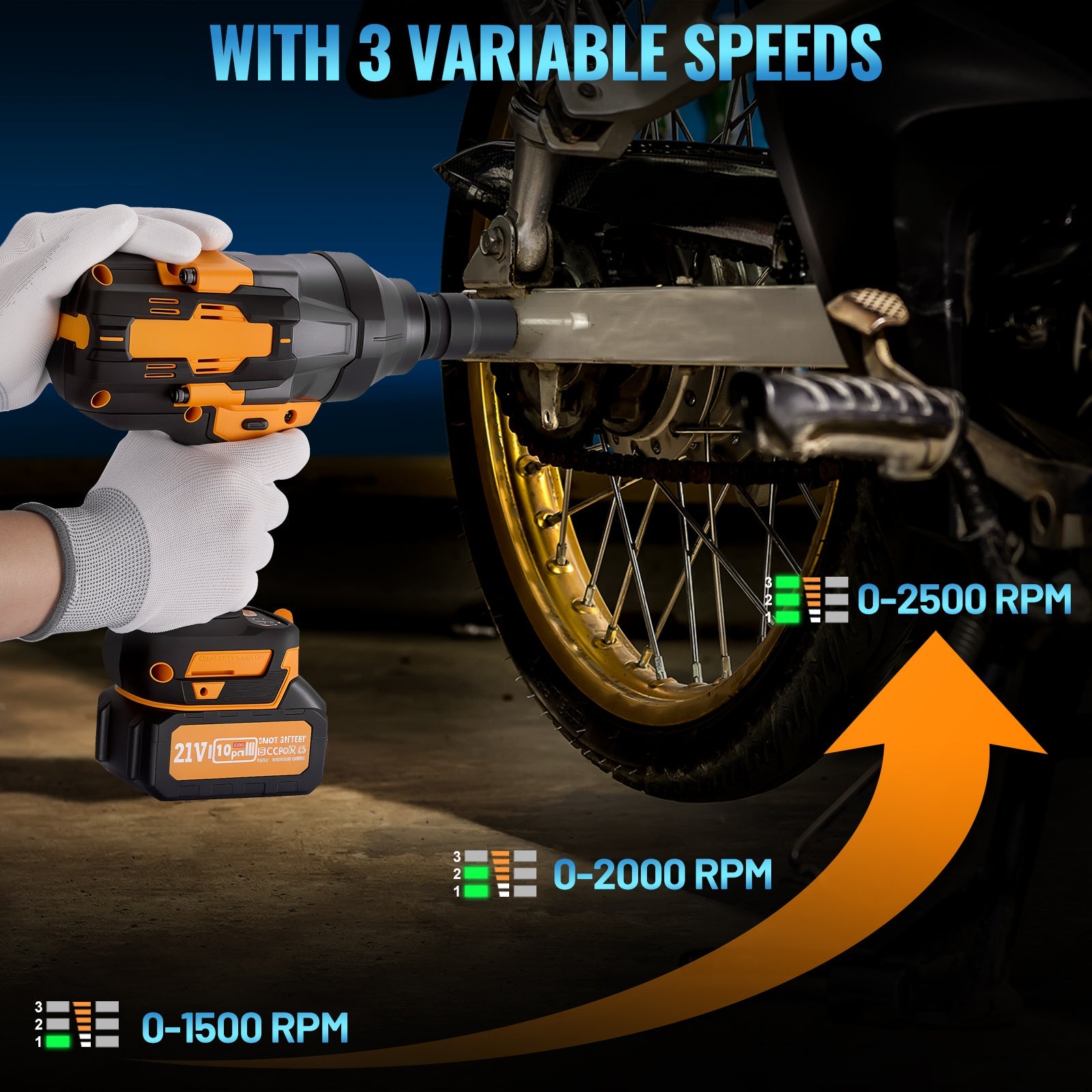✦ MASSIVE 2100N·m TORQUE & BRUSHLESS POWER: Delivering up to 1549 ft-lbs (2100N·m) of max torque, this 3/4" cordless impact wrench crushes demanding jobs like truck lug nuts, tractor bolts, and heavy-duty repairs. The advanced brushless motor ensures longer life, cooler operation, and zero maintenance—built for pros who need serious torque.